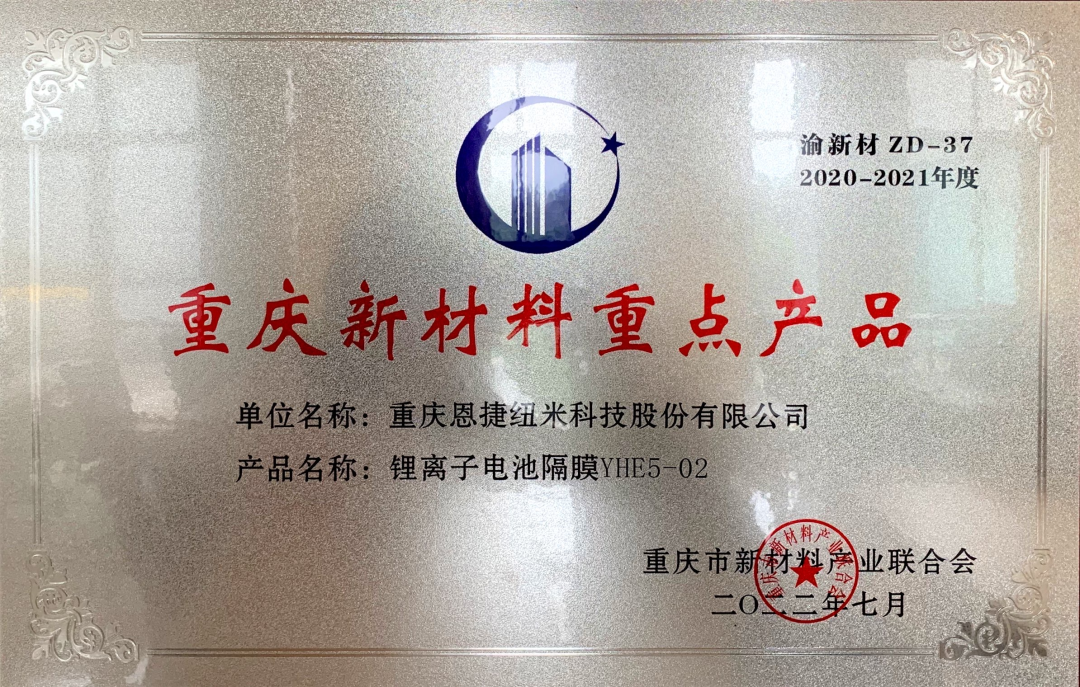 7ÔÂ15ÈÕ£¬ÖØÇìÊÐÐÂÖÊÁϹ¤ÒµÍŽá»áµÚ¶þ½ìµÚËĴλáÔ±´ó»áôßµÚ°Ë´ÎÀíÊ»á˳Ë쿪չ¡£»áÉÏ£¬ÖØÇìŦÃ׿Ƽ¼»ñµÃÓÉÖØÇìÊÐÐÂÖÊÁϹ¤ÒµÍŽá»á½ÒÏþµÄ2020-2021Äê¶È¡°ÖØÇìÐÂÖÊÁÏÑз¢ÖÆÔìÏȽøÆóÒµ¡±ÉùÓþ½±ÏÆä¡°ï®Àë×Óµç³Ø¸ôĤYHE5-02¡±²úÆ·»ñµÃÁË2020-2021Äê¶È¡°ÖØÇìÐÂÖÊÁÏÖØµã²úÆ·¡±½±Ïî¡£